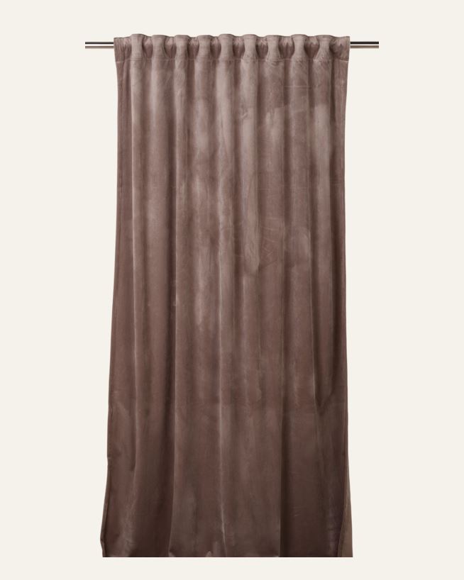 Velour gardin har en flott glans i stoffet og gir et luksuriøst og elegant uttrykk. Den henger tungt og med fint fall. Overflaten på velour er klippet, noe som gir et fint spill i fargen. Velourgardiner passer like godt i et stramt og minimalistisk h...