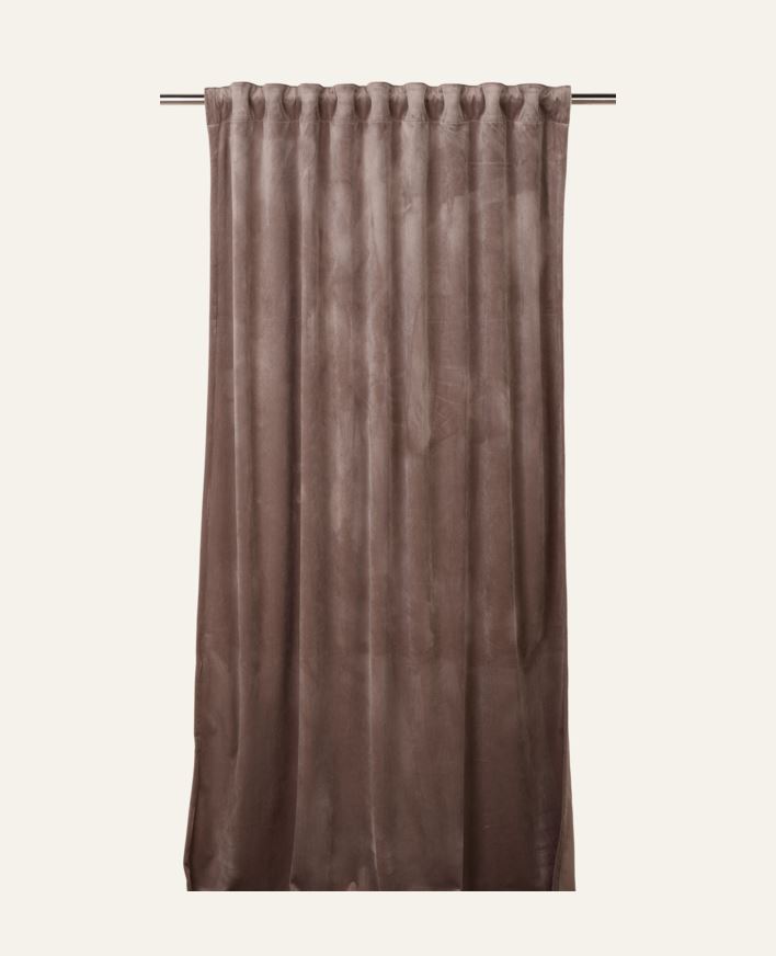 Velour gardin har en flott glans i stoffet og gir et luksuriøst og elegant uttrykk. Den henger tungt og med fint fall. Overflaten på velour er klippet, noe som gir et fint spill i fargen. Velourgardiner passer like godt i et stramt og minimalistisk h...