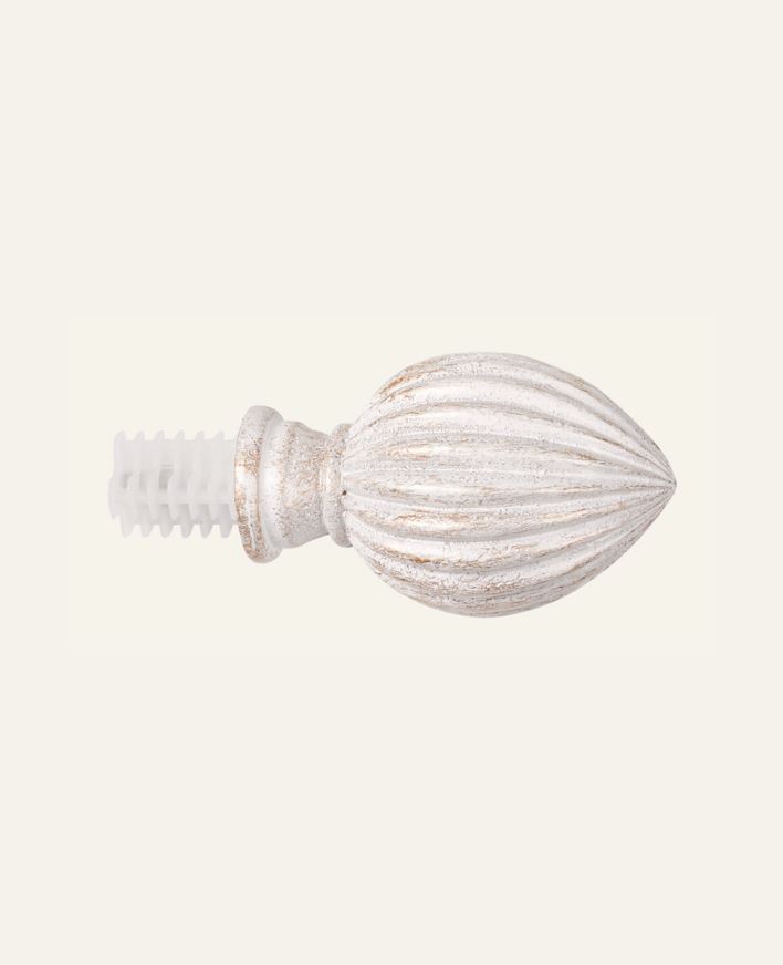 Kjegleformet endestykke som skrus inn i gardinstangen. Delikat fargekombinasjon i hvit og gull.