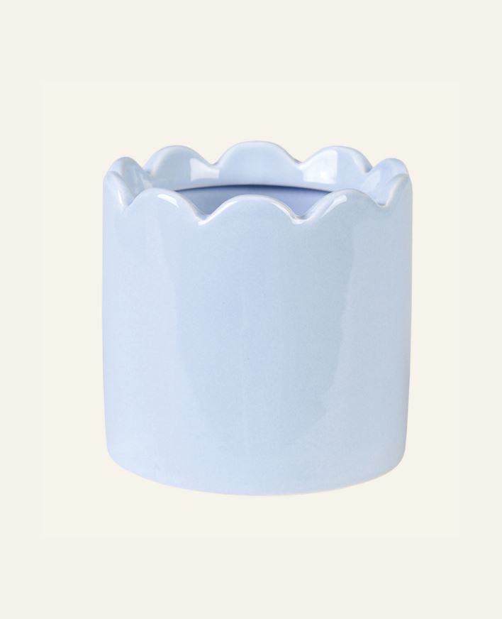 Potteskjuler av keramikk med dekorativ bølgekant gir et stilrent uttrykk i rommet. Passer til innendørs bruk for å bevare materialets holdbarhet. Keramikk kan slippe gjennom fukt, så bruk gjerne underlag som tåler vann. Egnet til både planter og som ...