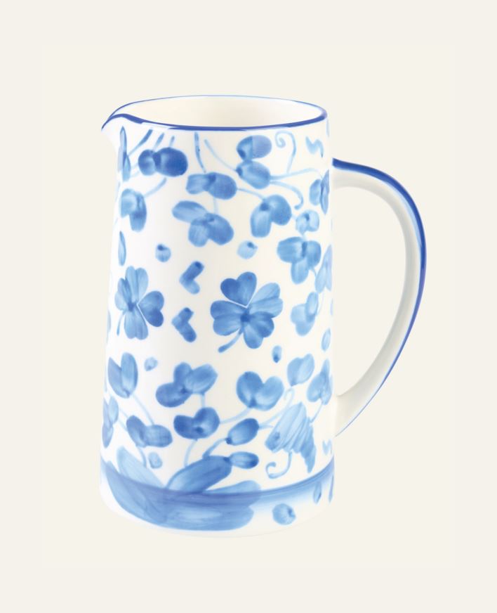 Nydelig, håndmalt mugge med kløvermønster i varme røde toner. En stemningsfull detalj til borddekking og servering. Kombiner med andre deler i serien for et helhetlig uttrykk.