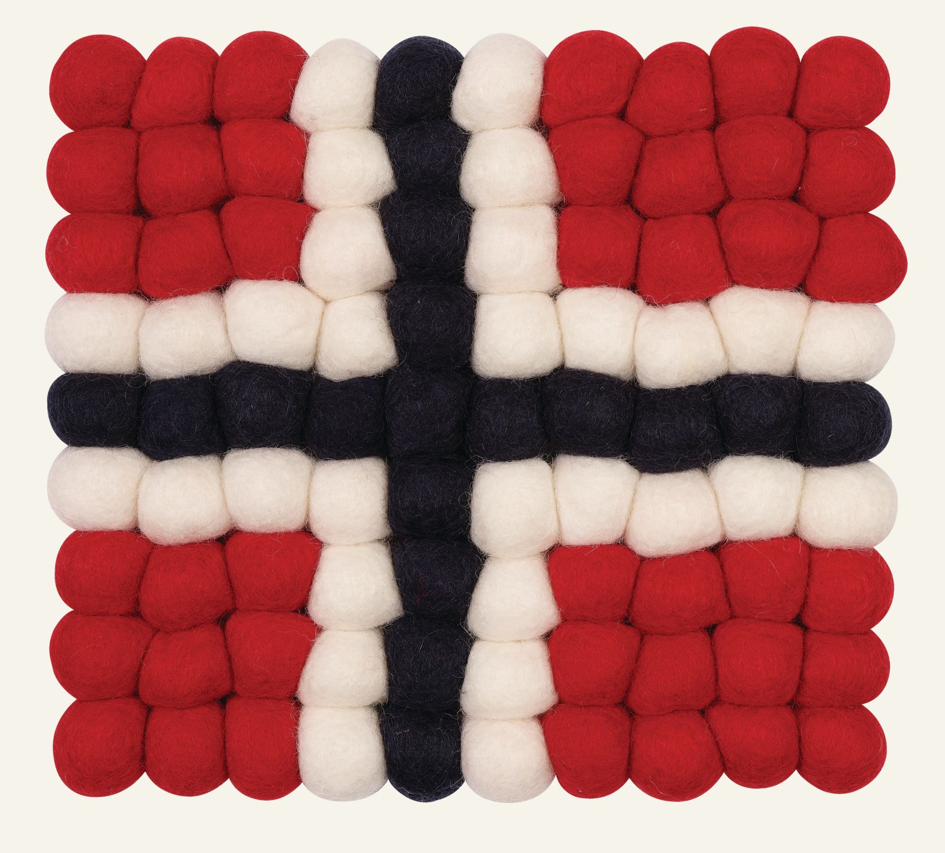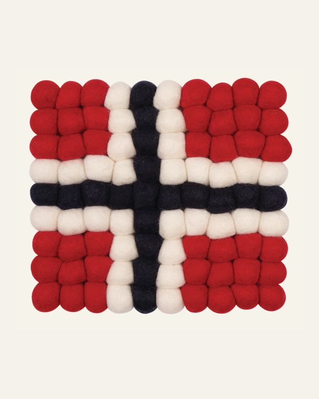 Gryteunderlag bestående av små kuler av 100% ull. Perfekt til 17.mai.