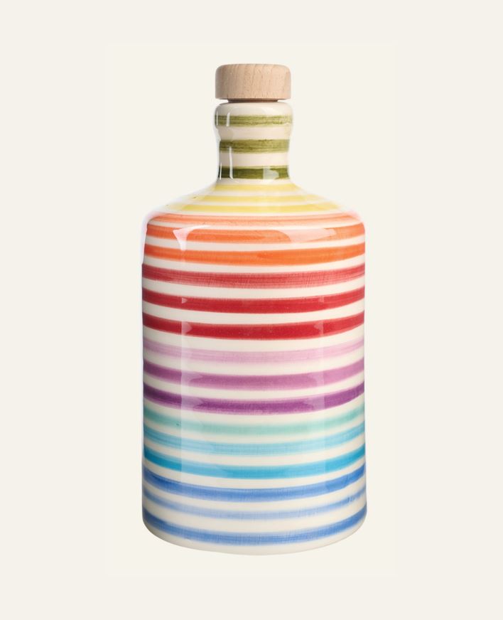 Extra virgin olivenolje, kaldpresset og tappet på denne dekorative og håndlagede keramikkflasken. Smaker godt på tomatsalat, pizza eller på pastaretter, grønnsaker og i dressinger.