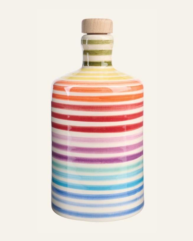Extra virgin olivenolje, kaldpresset og tappet på denne dekorative og håndlagede keramikkflasken. Smaker godt på tomatsalat, pizza eller på pastaretter, grønnsaker og i dressinger.