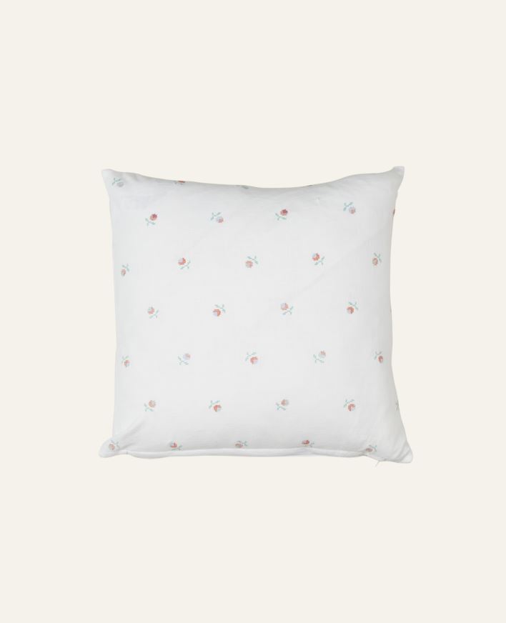 Pyntepute med trekk i 100% bomull med broderte blomster. Selges komplett med innerpute i resirkulert polyester. Gi hjemmet og interiøret ditt en stiloppgradering med denne dekorative puten. Bruk den alene i en lenestol eller sammen med andre puter og...