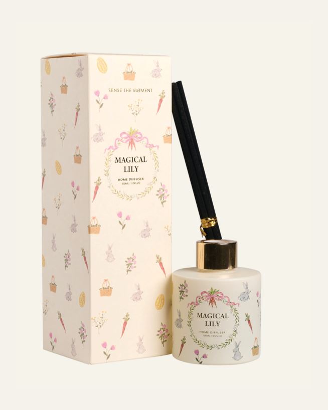 Sense Fairy Easter duftpinner inneholder 100ml olje med duften Magical Lilly. Det medfølger syv duftpinner. Produktet er pakket inn i en dekorativ eske. Les advarsler på produktet før bruk.