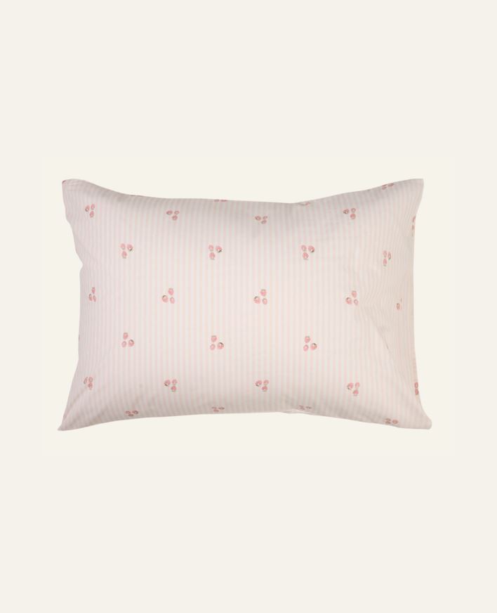 Strawberry Stripe bomull putevar er laget av 100% bomull. Bomull er et slitesterkt naturfiber av god kvalitet og lang holdbarhet. Bomull putevar har en jevn og glatt overflate, og føles behagelig mot huden. Dette putevar i bomull fremmer en mer bærek...